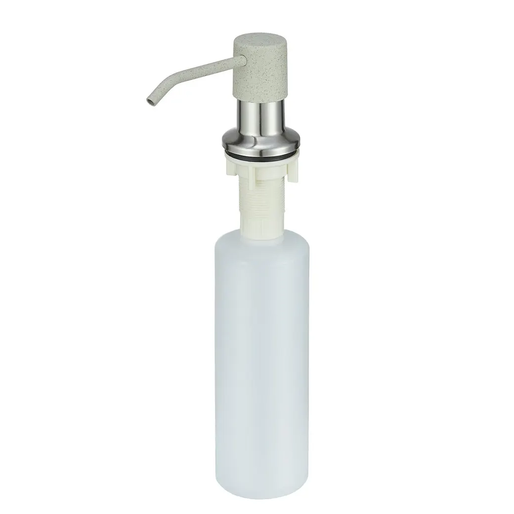 Дозатор для моющих средств Point PN3201BG светло-бежевого цвета, полностью совпадает с цветом кухонных моек и смесителей Point, окрашивание дозаторова производится на собственном производстве. Дозатор предназначен для установки в заранее подготовленное отверстие диаметром 25-35 мм, его можно установить как на мойку, так и на столешницу. Максимальная толщина столешницы, в месте установки дозатора, не должна быть больше 20 мм. Наполнение колбы дозатора моющим средством производится сверху, помпа дозатора вытаскивается и через горловину колбы заливается моющее средство.