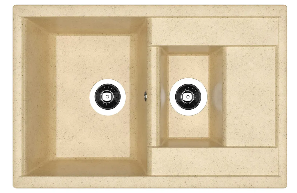 - Легкость ухода: Гладкая поверхность мойки из литьевого мрамора не впитывает загрязнения и легко чистится.