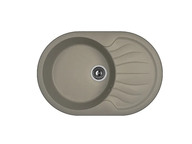 - Круглая мойка из литьевого мрамора: обеспечивает прочность и устойчивость к повреждениям и загрязнениям.