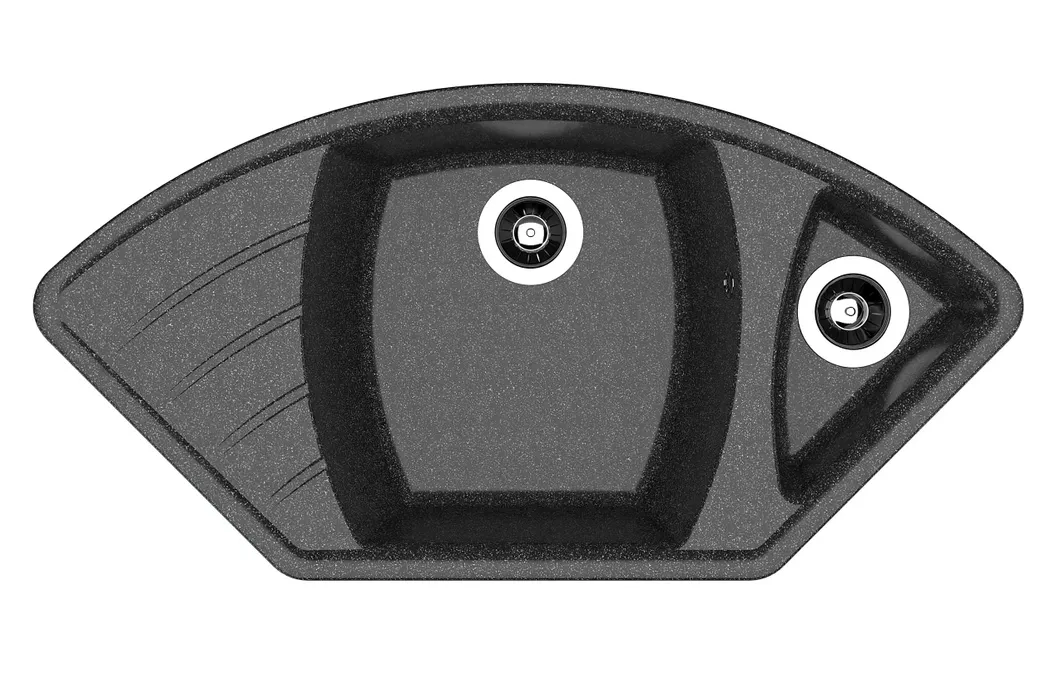 - Эстетичный дизайн: Угловая мойка черного цвета из литьевого мрамора отлично вписывается в современный кухонный интерьер.