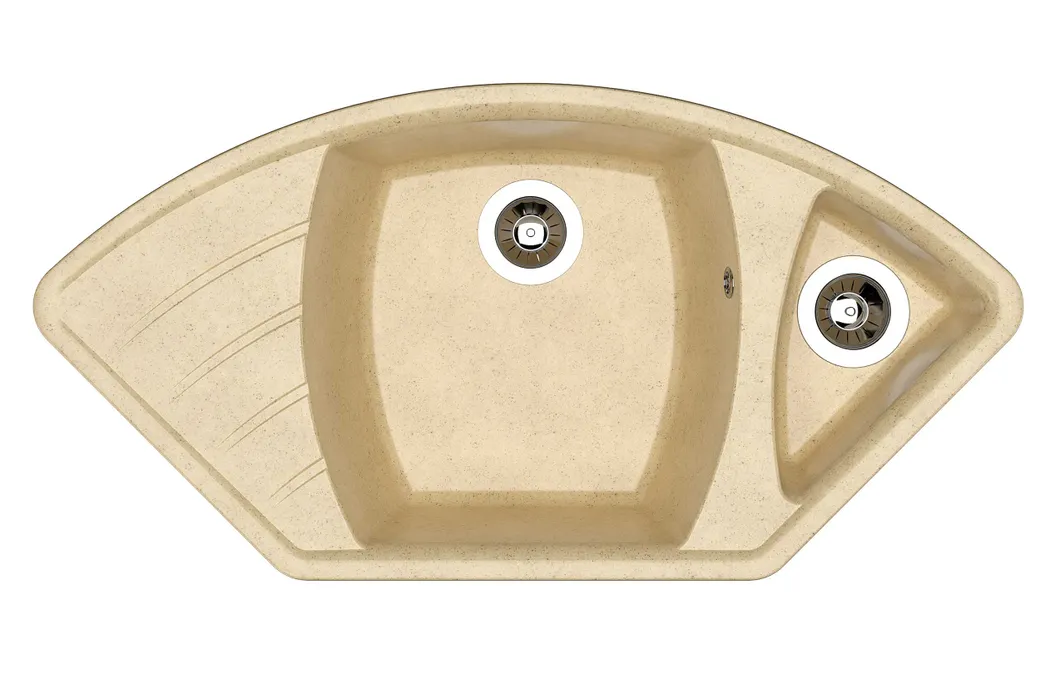 - Угловая форма: Угловая мойка позволяет эффективно организовать пространство на кухне, что особенно важно для небольших помещений.