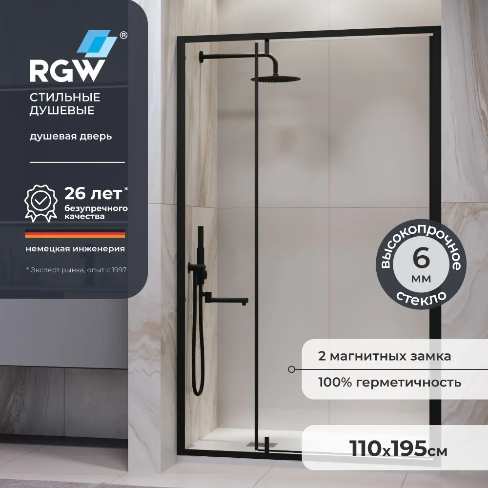 Душевая дверь 110*195 RGW LE-103-B Чёрный/Прозрачное/6 мм