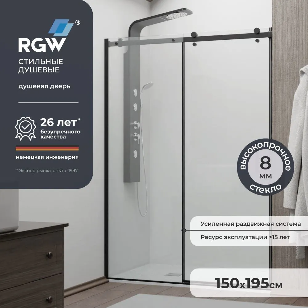 Эта душевая дверь RGW TO-14B станет стильным и функциональным элементом вашей ванной комнаты. Раздвижная душевая дверь 150*195 с прозрачным стеклом и черным профилем идеально подходит для нишевых решений. Изготовленная из закаленного стекла толщиной 8 мм, она обеспечивает надежность и устойчивость к повреждениям.