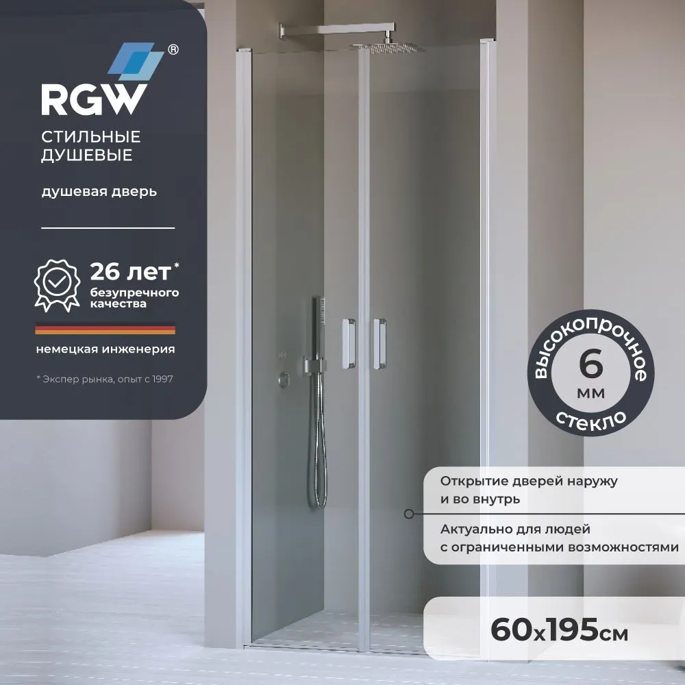 Душевая дверь 60*195 RGW PA-104 Хром/Прозрачное/6 мм (EasyClean)