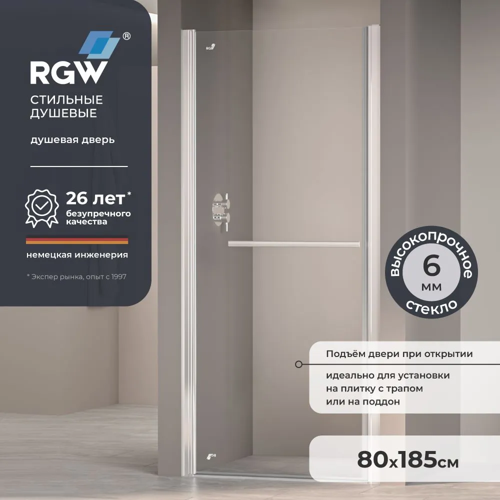 Представляем душевую дверь RGW PA-03 80x185 с хромированным профилем и прозрачным стеклом — функциональное решение для вашей ванной комнаты. Эта душевая дверь в нишу от бренда RGW сочетает в себе современный стиль и высокую надежность. Изготовленная из закаленного стекла толщиной 6 мм, она обеспечивает долговечность и безопасность.
