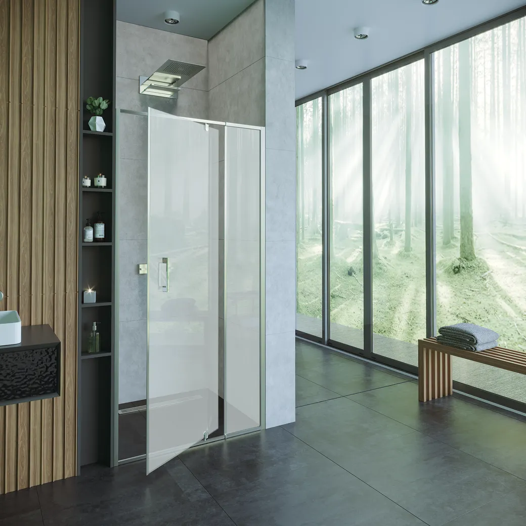 Закаленное стекло 6 мм Профиль из анодированного алюминия Высота 2000 мм для максимального комфорта Магнитные ленты надежно фиксирую двери в закрытом положении Силиконовые уплотнители и молдинги для герметичности стыков Регулируемый пристеночный профиль нивелирует неровности стен до 15 мм с каждой стороны Телескопический профиль позволяет изменять ширину изделия ±10 см Нижнеопорная система дверных петель исключает проседание дверей в процессе эксплуатации Изделие может трансформироваться в ограждение Декоративная заглушка препятствует попаданию влаги во внутрь профиля Установка возможна как на поддон, так и на пол. Поддон не входит в стандартную комплектацию и приобретается отдельно