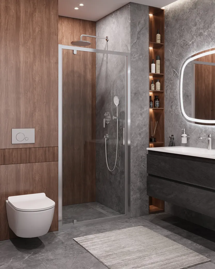 - Универсальная установка: Возможность монтажа как на пол, так и на поддон позволяет адаптировать дверь к любым пространственным требованиям.