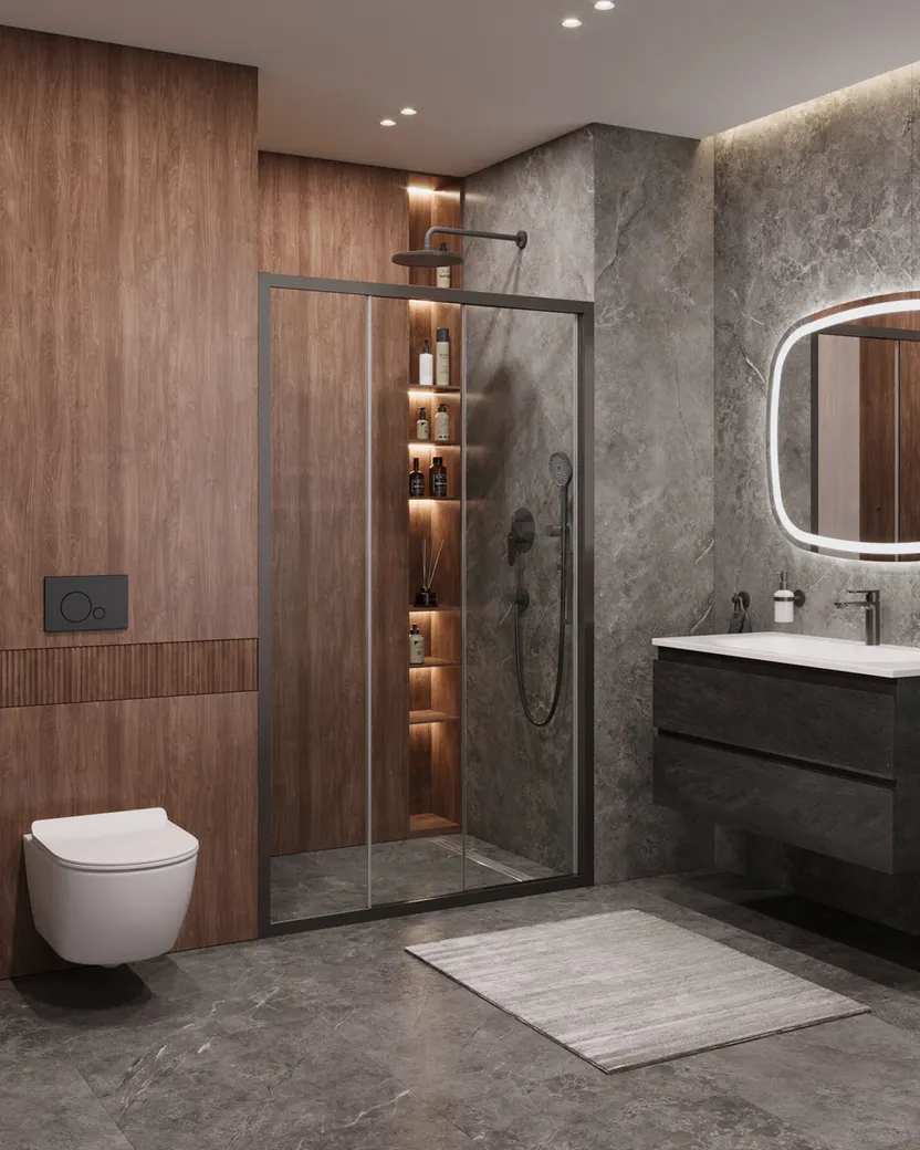 - Универсальный монтаж: Подходит для установки в нишу, на пол или поддон, что позволяет гибко адаптировать дверь под вашу ванную комнату.