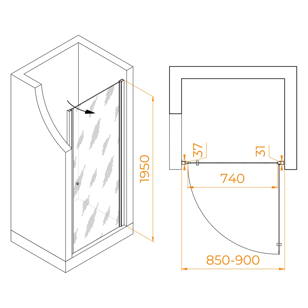 Профиль двери выполнен в стильном хромовом цвете, что придает ему элегантный и современный внешний вид. Конструкция дверей распашные, что дает возможность эффективно использовать пространство ванной комнаты. Двери оборудованы регулируемым профилем, что позволяет настроить двери под размеры вашей ванной комнаты.