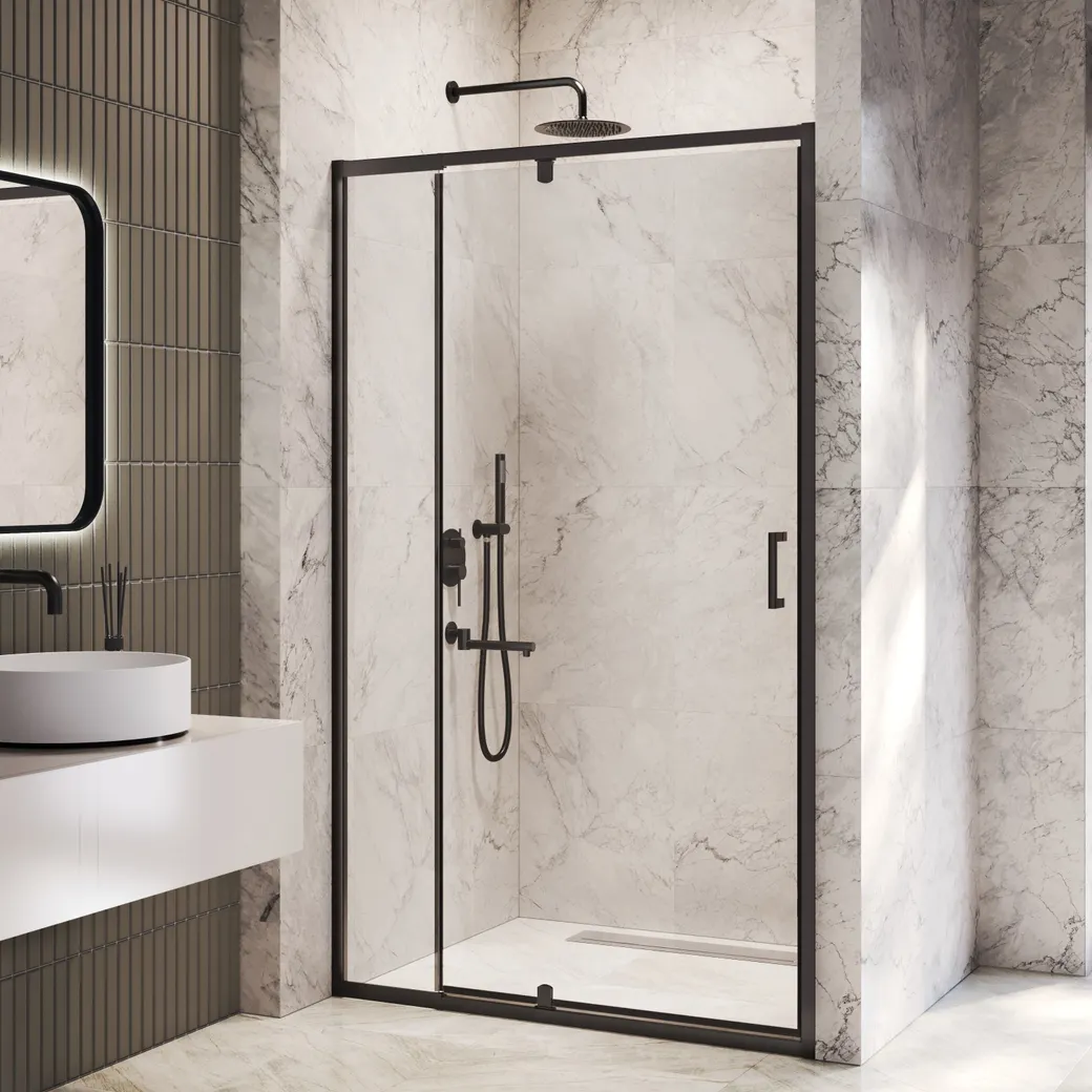 Обновите свою ванную комнату с душевой дверью INRAIN VIN-008. Эта душевая дверь распашная, выполненная из прозрачного стекла толщиной 6 мм, станет стильным и функциональным элементом вашей ванной. Чёрный профиль добавляет современности, делая её подходящей для любого интерьера.