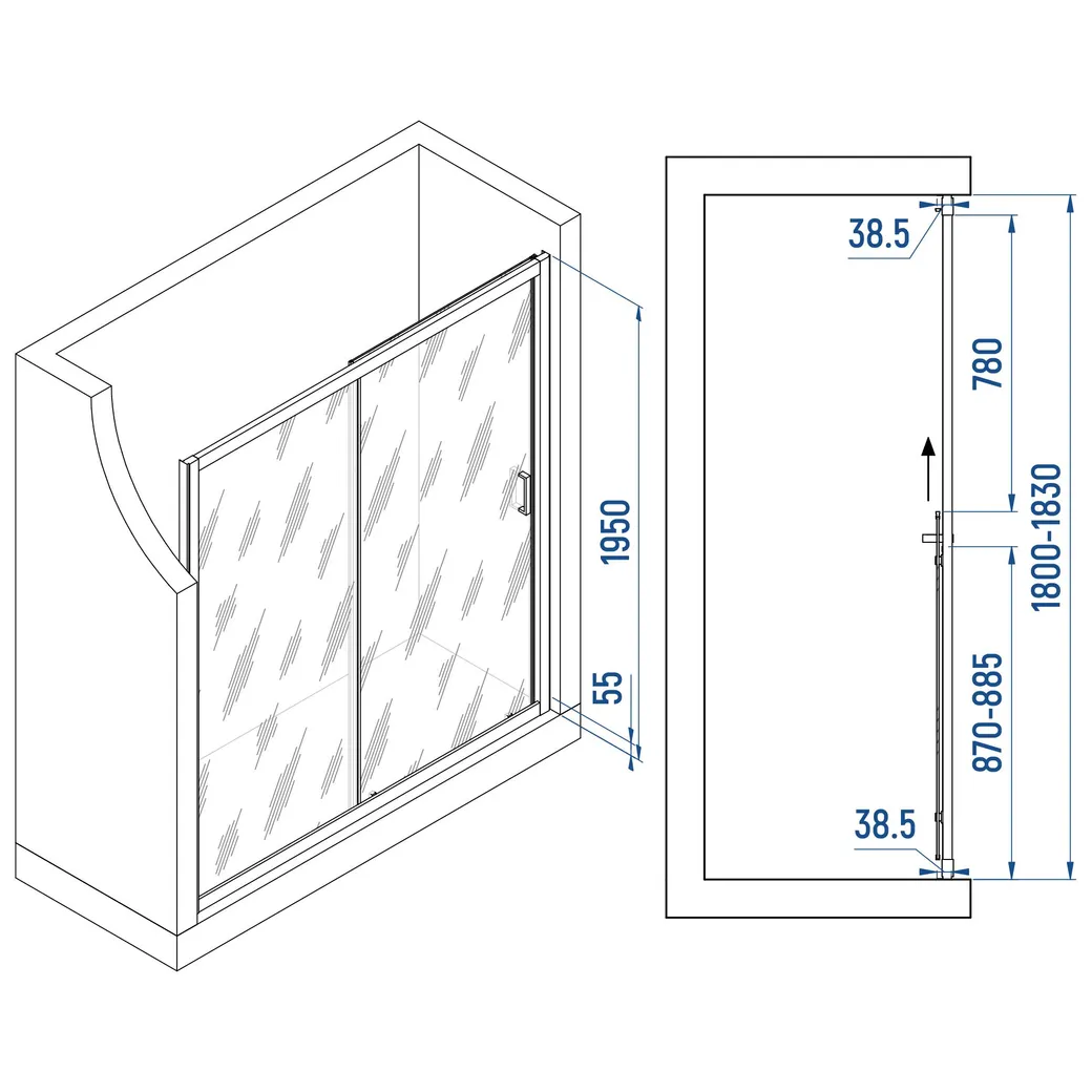 Душевая дверь INRAIN VIN-016 / 180х195 / Хром / Прозрачное / 6 мм