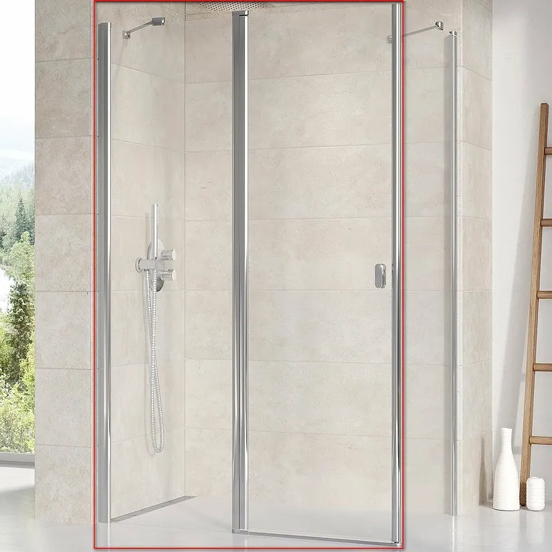 - Душевая дверь с хромированным профилем и прозрачным стеклом.