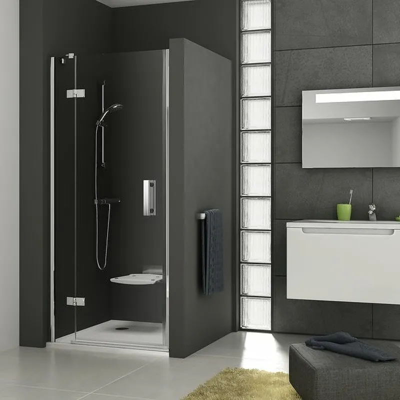 - Распашная конструкция: Удобное открывание наружу обеспечивает легкий доступ в душевую кабину.