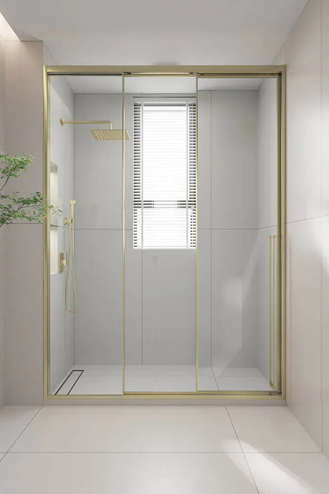 Душевая дверь раздвижная Premium Prato 300 G-L, 1700х2000, золото брашированный, стекло прозрачное арт-PR3/L-170-01-G-C4