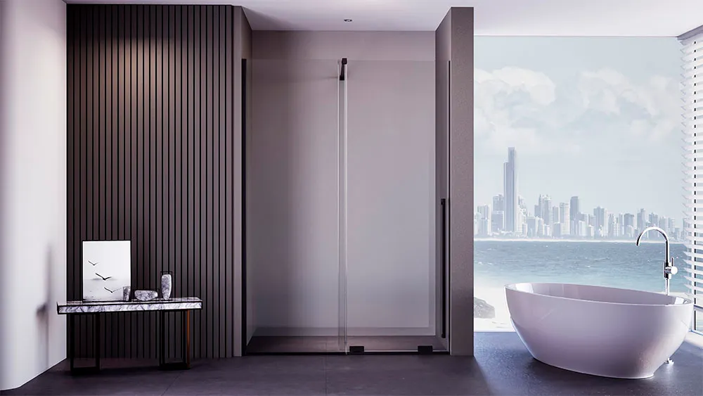 Душевая дверь Veconi Premium Trento PTDW-50B, 1300x2000, черный матовый, стекло прозрачное арт-PTDW-50B-130-01-C4