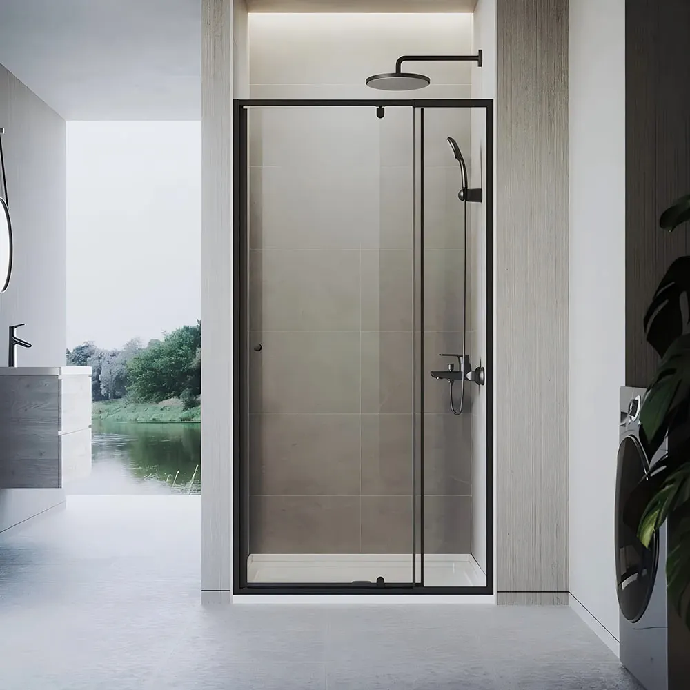 Душевая дверь Veconi Vianno VN-26B, 1000x1950, Черный матовый, стекло прозрачное арт-VN26B-100-01-C8