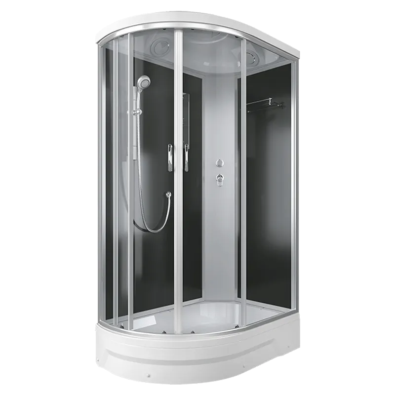 Интуитивно понятная сборка: в паспорте изделия подробно описан процесс сборки. Все, что нужно – внимательно прочитать инструкцию! Легкость сборки также достигается за счет: симметричности стекол, отличной стыкуемости и универсальности деталей, основного крепежа болтов с гайками, крепежа в отдельной упаковке с нумерацией согласно паспорта. Сборка без герметика: в торцы стеклянных задних стенок в фабричных условиях устанавливается полый силиконовый уплотнитель, что позволяет при сборке кабины использовать герметик только при установке сифона. Силиконовые уплотнители и молдинги на остеклении герметизируют стыки и защищают от попадания воды на пол. Термически закалённое ударопрочное стекло: надежно и безопасно. Каждая партия остекления проходит тщательный входной контроль на соответствие требованиям нормативной документации. Профиль: выполнен из анодированного алюминия, устойчив к воздействию влаги и не подвержен коррозии. Шланг: с внутренней армировкой - дополнительная прочность изнутри, выдерживает высокое давление рабочей среды и температурные режимы. Корпус смесителя: из латуни, имеет более долгий срок службы. Картридж смесителя: подвижные пластины выполнены из керамики, что делает их более устойчивыми к истиранию. Магнитная лента: плотно фиксирует стеклянные двери в закрытом положении, не давая попадать воде на пол и стены. Дверные ролики: оснащены закрытым подшипником из нержавеющей стали. Обеспечивают надежную, плавную и бесшумную работу дверей. Каркас: сборно-разборный, стальной с порошковой (молотковой) окраской