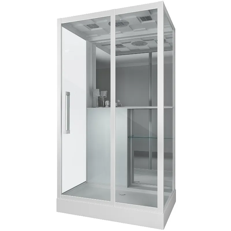 - Эстетичность: Белые задние стенки из закаленного стекла и алюминиевый профиль придают кабине современный вид.