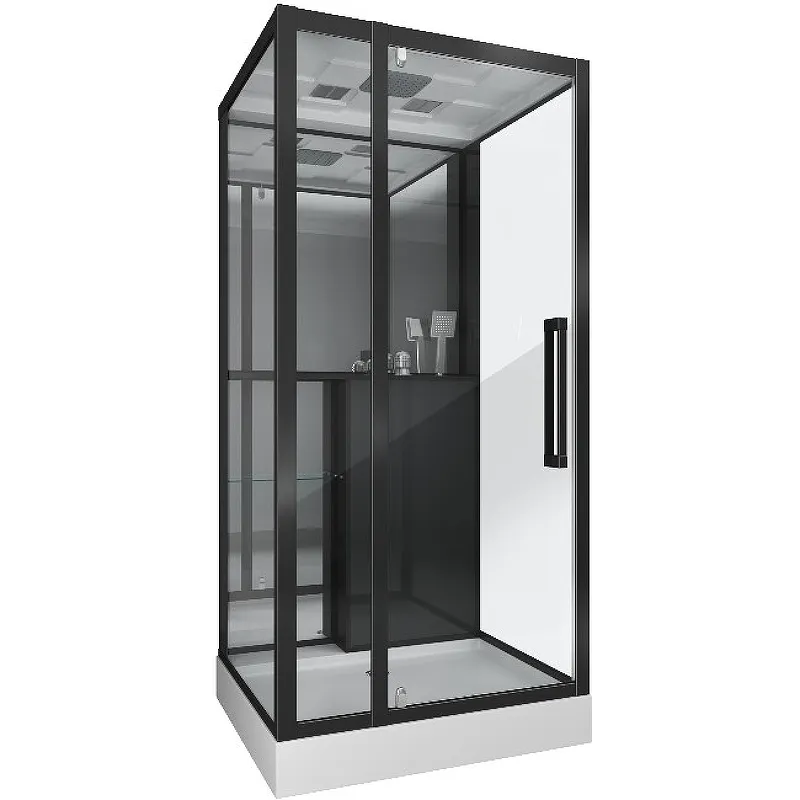 Душевая кабина Grossman 90x90 GR261 — это функциональная душевая кабина с низким поддоном, идеально подходящая для современных ванных комнат. Эта угловая душевая кабина с крышей и распашной дверью выполнена в элегантном черном цвете, что придает интерьеру стильный акцент.