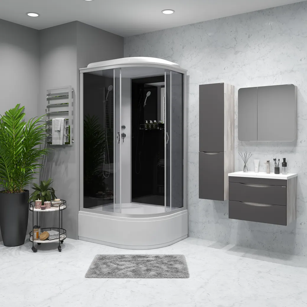 - Высокий поддон: Удобный для детей и пожилых людей, позволяет использовать кабину как мини-ванну.