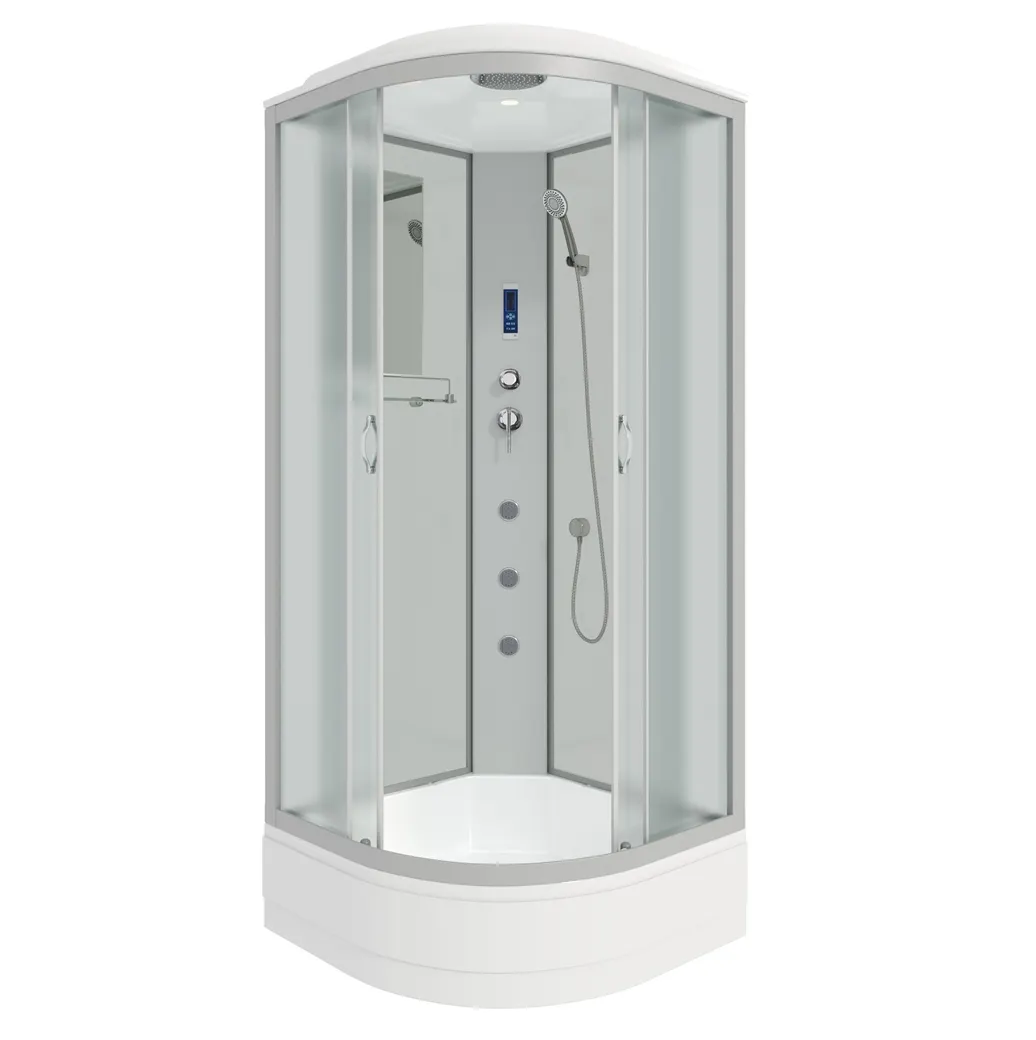 Эта душевая кабина Niagara предлагает комфорт и стиль для вашей ванной комнаты. Душевая кабина 100x100 с матовым стеклом и средним поддоном 26 см — это сочетание функциональности и современного дизайна. Благодаря универсальной ориентации и форме в четверть круга, она идеально впишется в ваш интерьер.