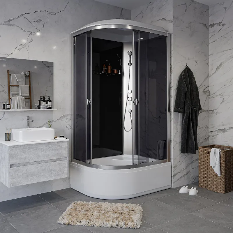 - Легкость установки: Пристенный угловой монтаж и бессиликоновая сборка ускоряют процесс установки, а регулируемые ножки позволяют адаптировать кабину к любой поверхности.