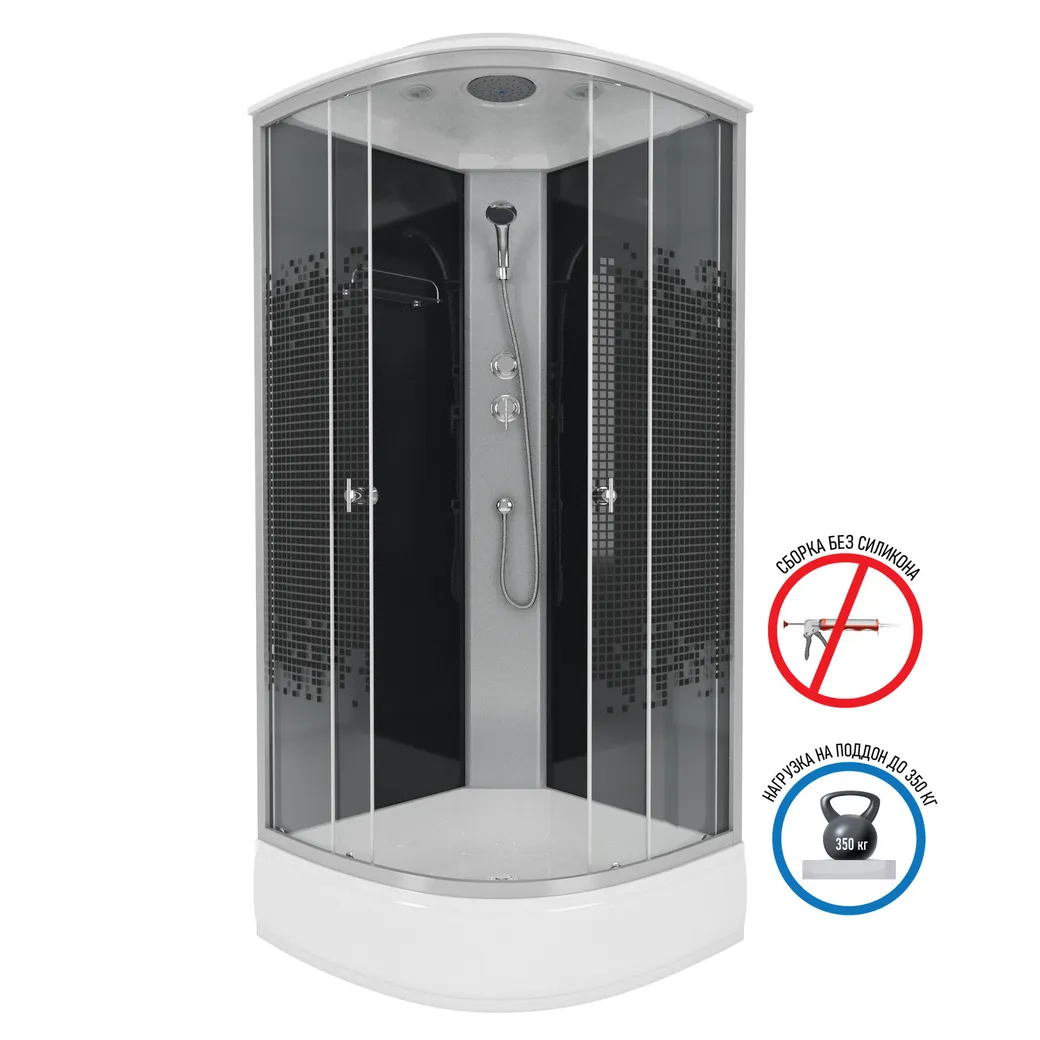 Душевая кабина Niagara Eco NG--14BLACK (90х90х215) средний поддон(26см),стекло мозаика,4 места арт-3504
