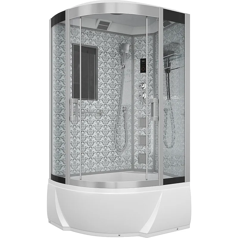 - Оснащение: Подсветка, верхний душ, ручной душ, радио