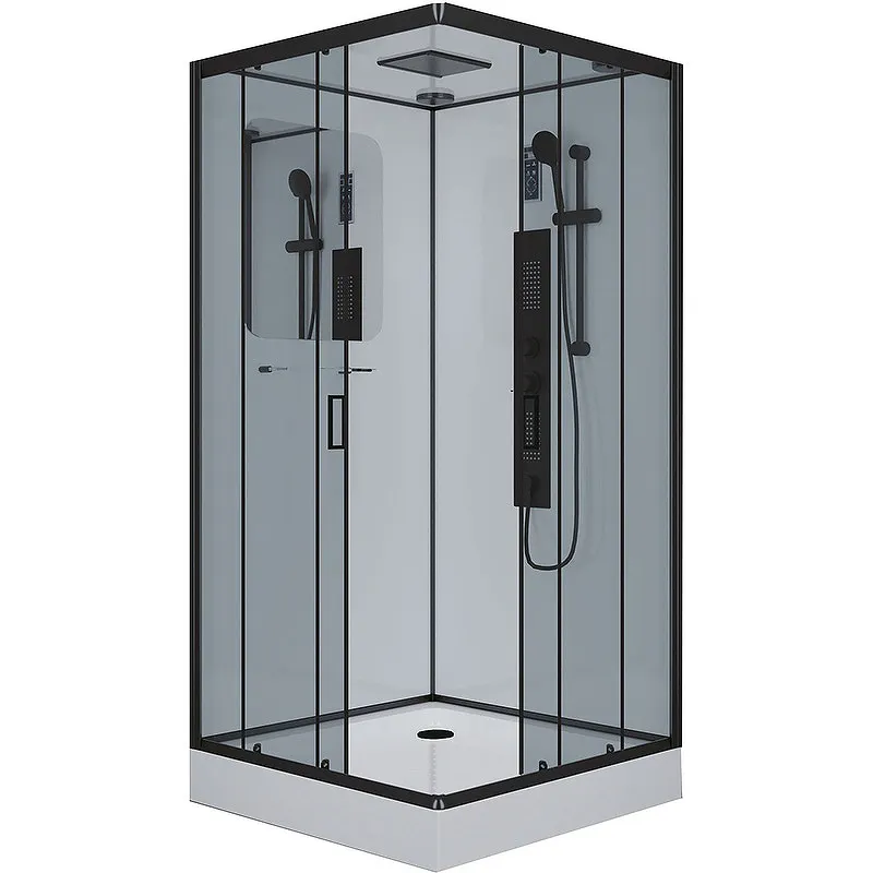 Эта душевая кабина Niagara сочетает в себе современный дизайн и высокотехнологичные функции. Душевая кабина 100x100 с гидромассажем и низким поддоном станет идеальным дополнением вашей ванной комнаты. Она выполнена в стильном матовом черном цвете с тонированными стеклами, что придает элегантности и уюта.