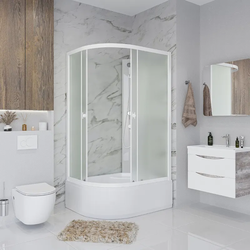 - Безопасность и комфорт: Матовое стекло и антискользящее покрытие поддона обеспечивают безопасность во время использования.