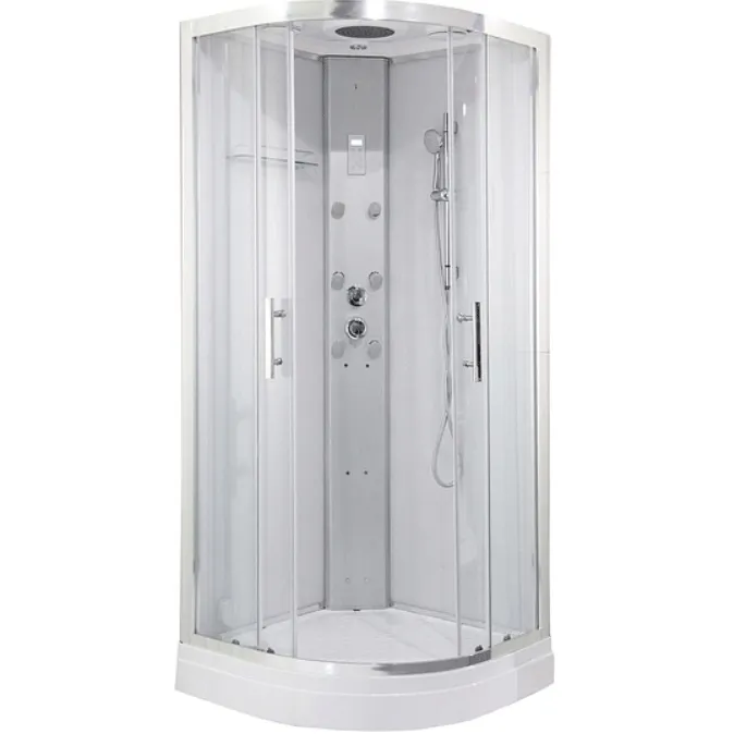 - Современный дизайн: Белый профиль и задние стенки из ударопрочного стекла Super White придают кабинке стильный и свежий вид.