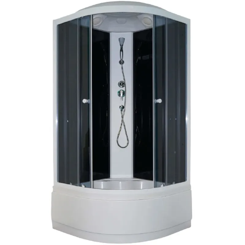 - Стильный дизайн: Тонированные фасадные стекла и черные задние стенки из закаленного стекла придают кабинке современный вид.