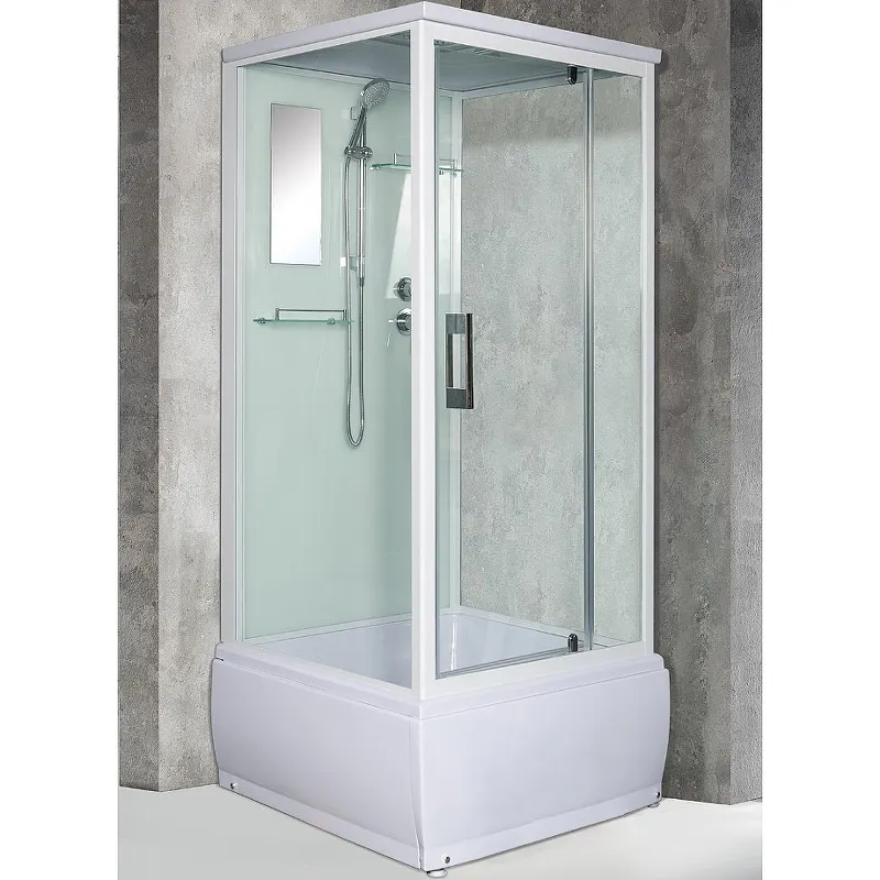 - Простая установка: Угловое расположение и компактные размеры 90x90 см позволяют легко установить кабину в любой ванной комнате.
