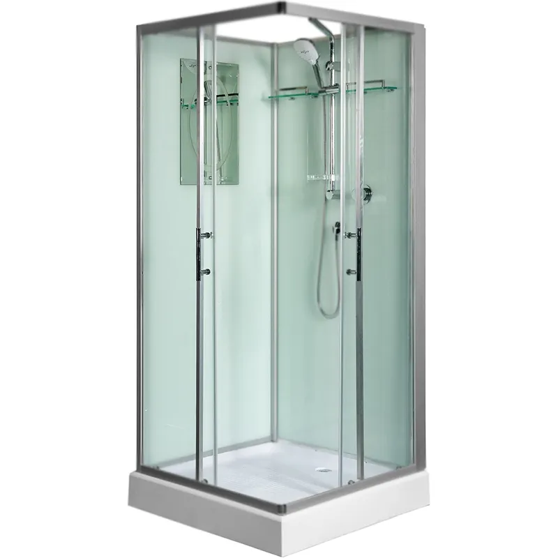 - Удобный монтаж: Угловая душевая кабина с пристенным типом установки экономит место и проста в установке.