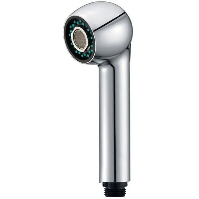 Душевая лейка для кухонного смесителя Viko V-0030. Может использоваться и в парикмахерских. Цвет: хром. Количество режимов струи: 2. Материал: пластик. Форма: круглая. Стандарт подключения: 1/2. В комплекте поставки: душевая лейка.