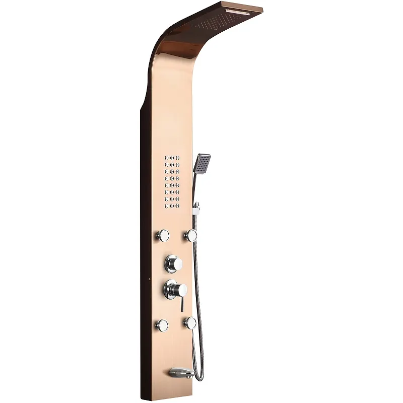 Душевая панель Ceruttispa Victoria RG CT9977 с гидромассажем — это сочетание функциональности и элегантного дизайна. Изготовленная из нержавеющей стали в оттенке розового золота, она станет изысканным акцентом в вашем интерьере. Данную душевую панель можно легко установить на стену, что делает её идеальным решением для душевых уголков и ванн.
