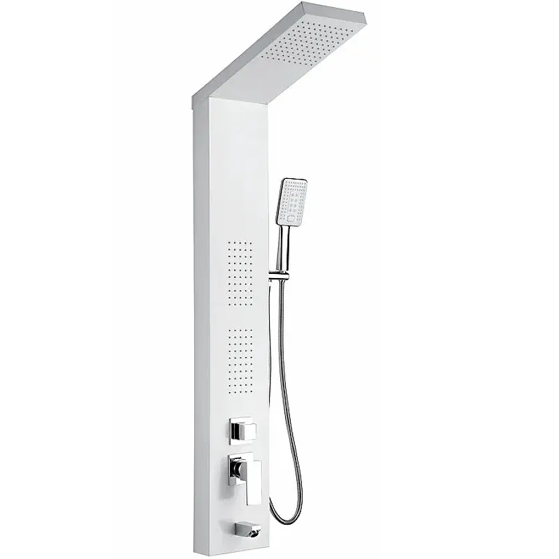 Душевая панель Frap F24005-8 — идеальный выбор для создания современного интерьера ванной комнаты. Эта душевая панель с гидромассажем обеспечивает максимальный комфорт и удобство использования. Панель выполнена из высококачественной нержавеющей стали, что гарантирует долговечность и стильный внешний вид.