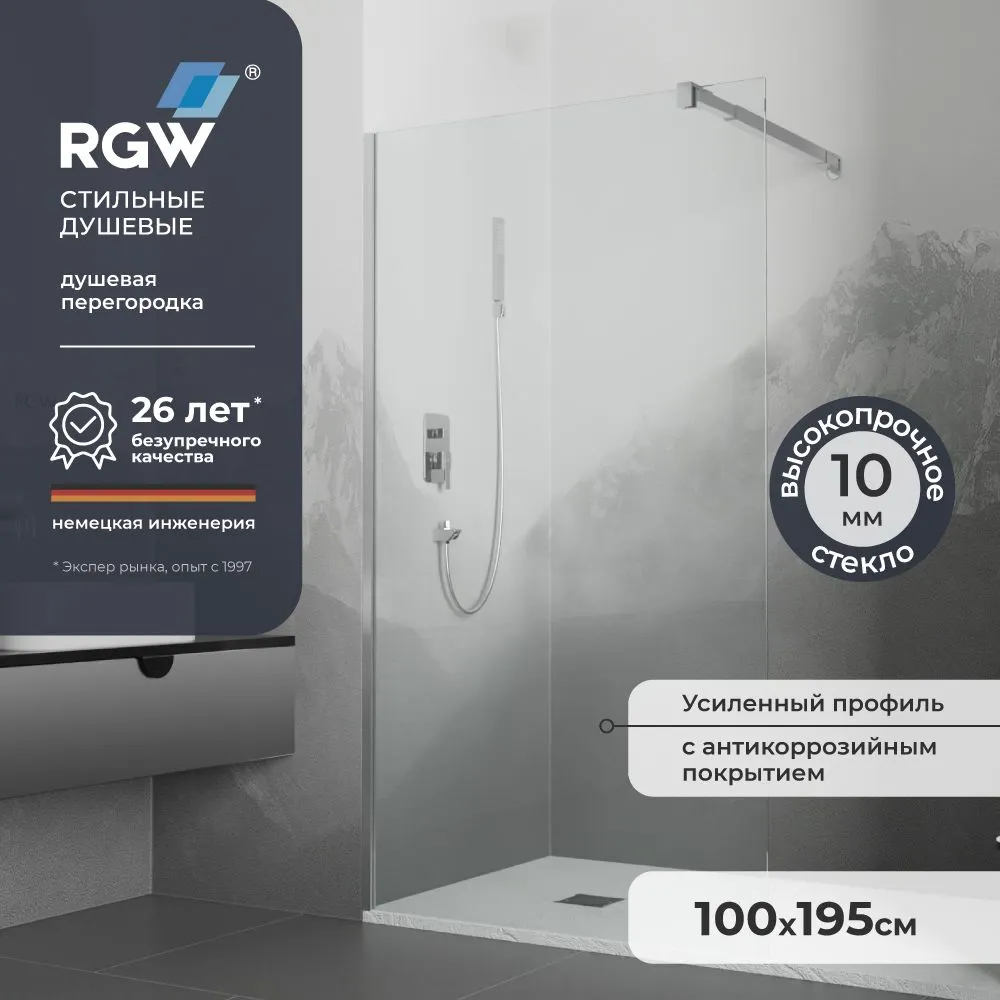 Душевая перегородка 100*195 RGW WA-001 Хром/Прозрачное/10 мм