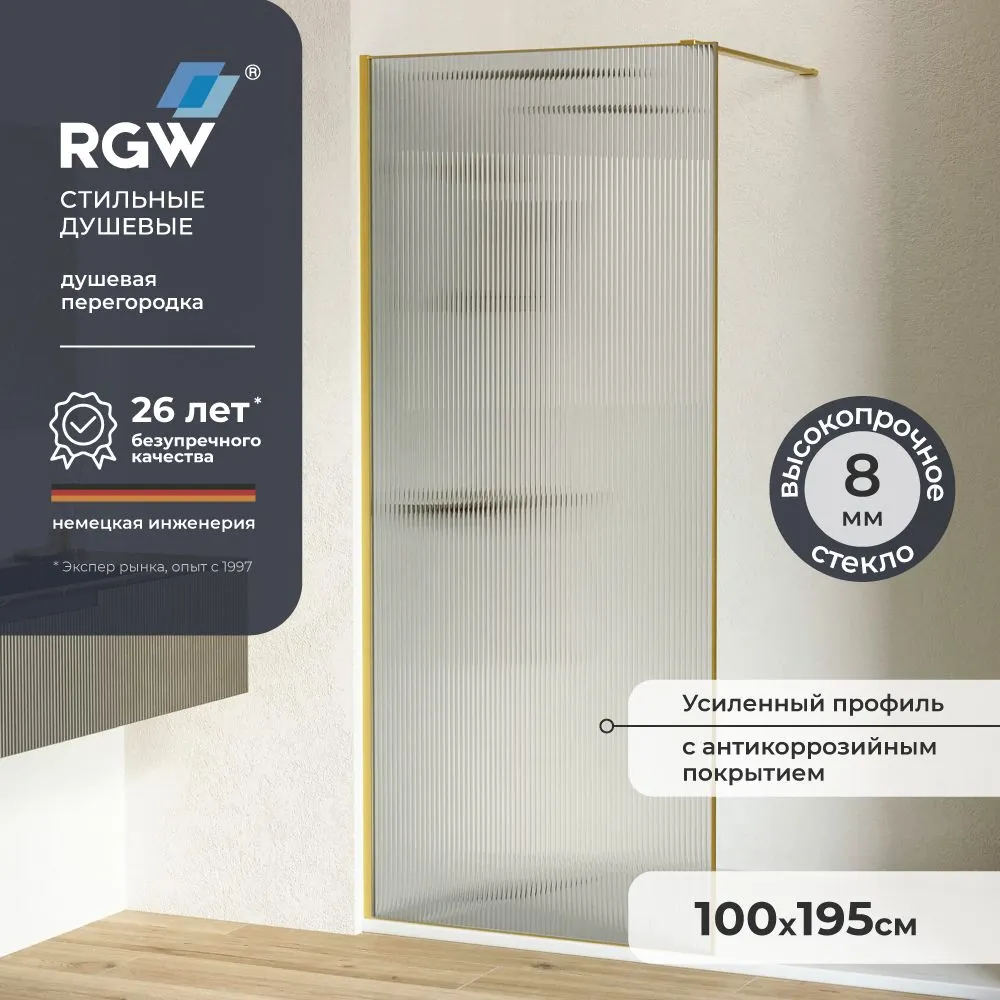 Душевая перегородка 100*195 RGW WA-08-Gb Золото браш/Ребристое