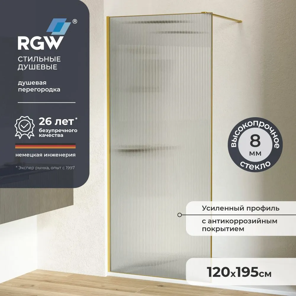Душевая перегородка 120*195 RGW WA-08-Gb Золото браш/Ребристое