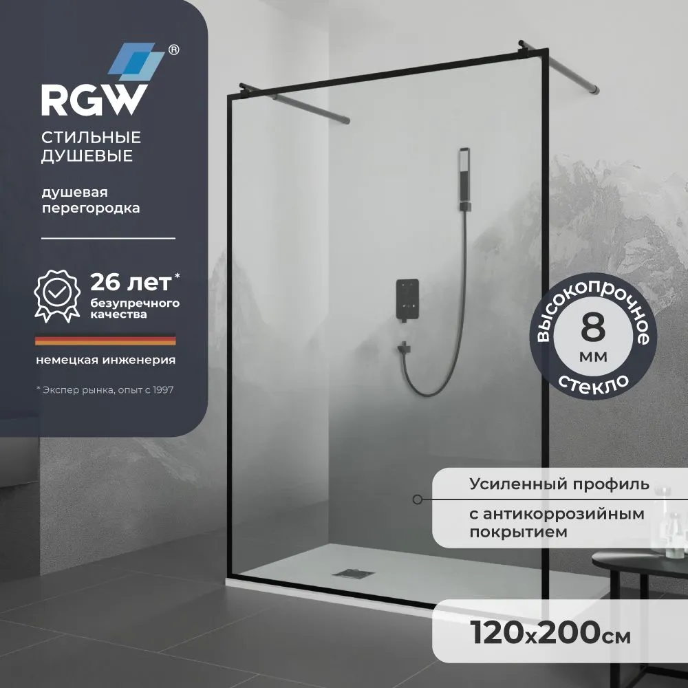 Душевая перегородка 120*200 RGW WA-017-B Чёрный/Прозрачное(Принт)/8 мм