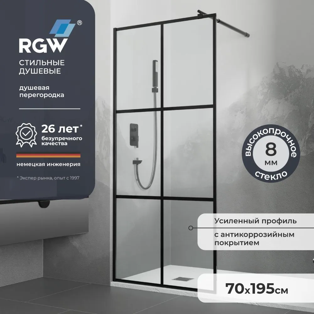 Душевая перегородка 70*195 RGW WA-111 B Чёрный/Прозрачное(Принт)/8 мм (Easy)
