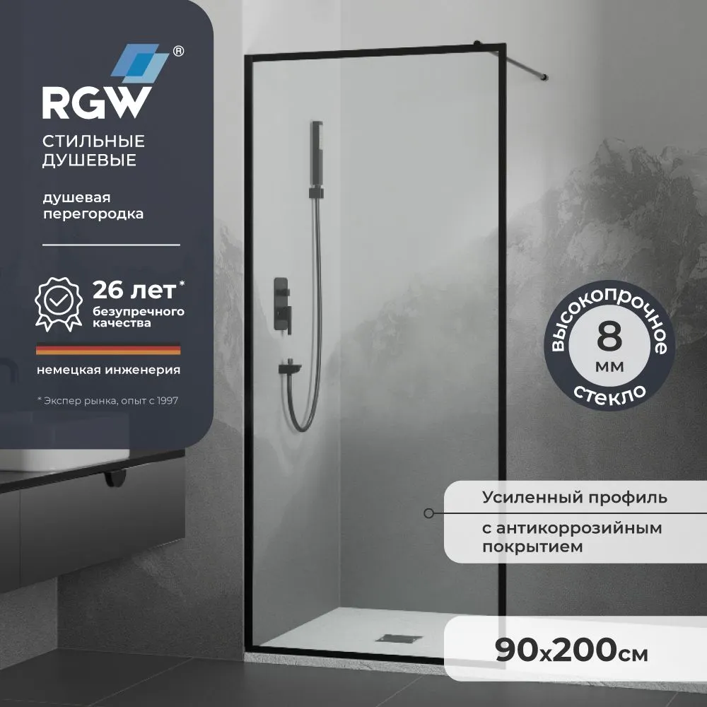 Душевая перегородка 90*200 RGW WA-012 B Чёрный/Прозрачное(Принт)/8 мм