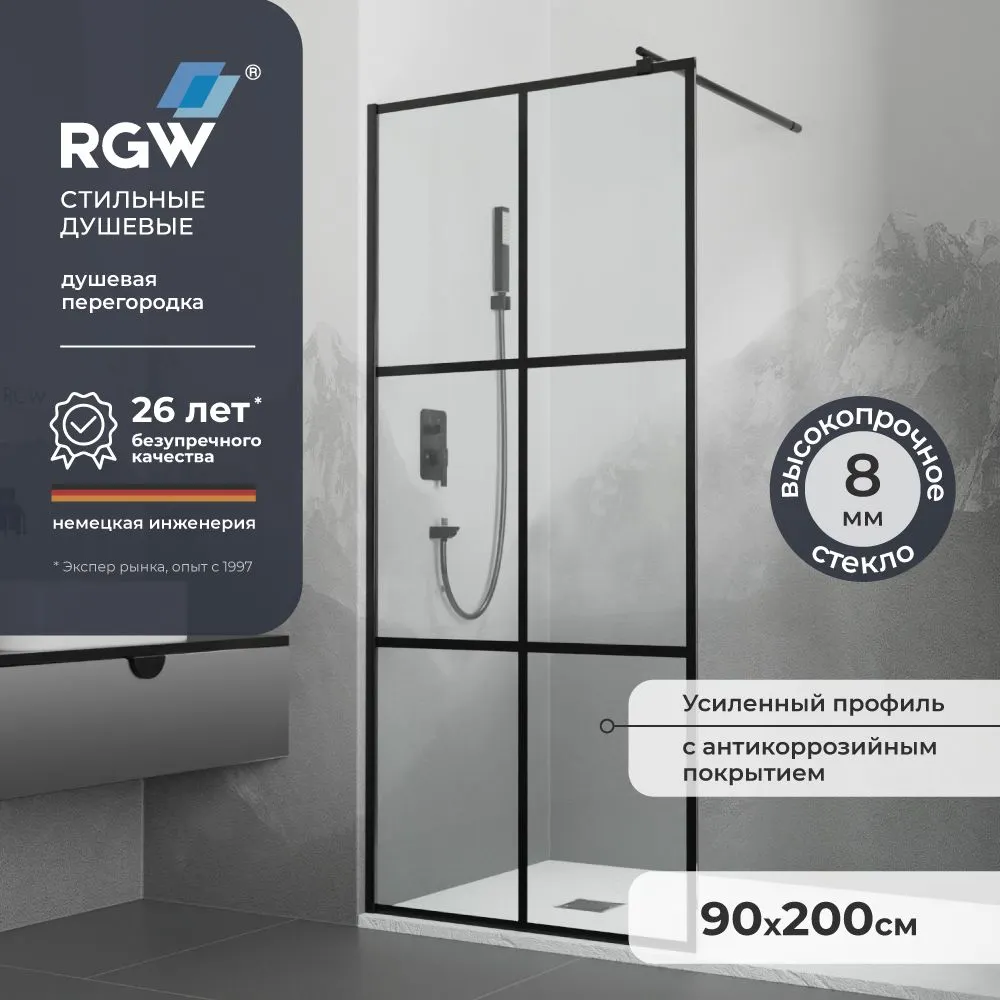 Душевая перегородка RGW WA-11-B 90x200 Чёрный/Прозрачное