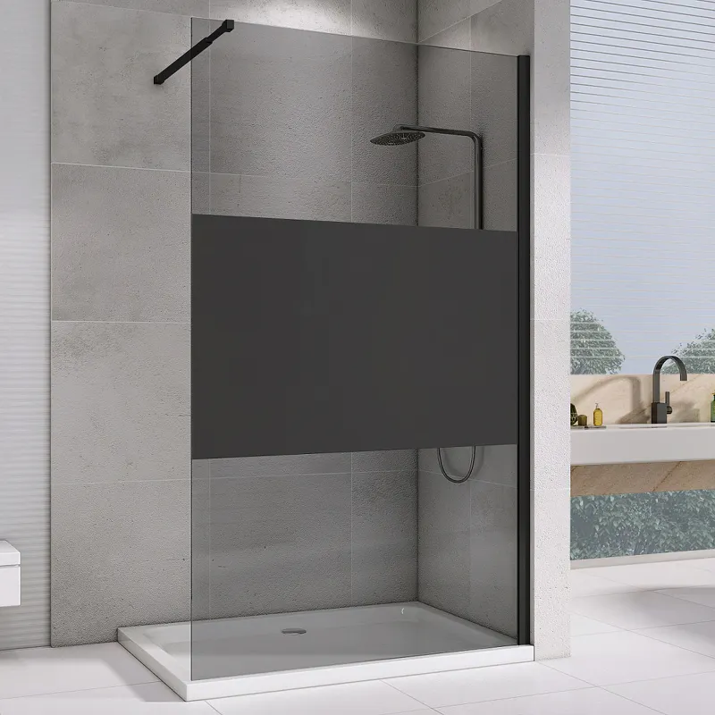 - Современный дизайн: черный профиль и тонированное стекло создают стильный и современный вид, который украсит любую ванную комнату.