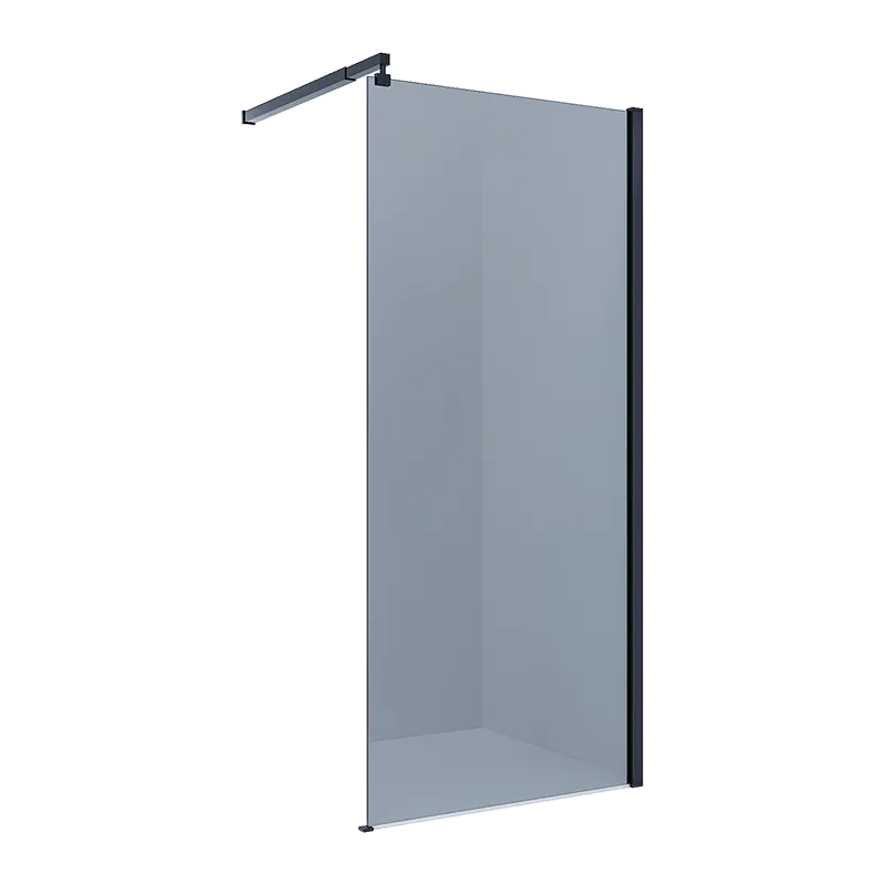Закаленное безопасное стекло толщиной 8 мм. Профиль из нержавеющей стали. Высота 2000 мм для максимального комфорта. Телескопический держатель с регулировкой ширины входа от 800 до 1000 мм. Силиконовый молдинг на остеклении для герметичности стыка. Регулируемый пристеночный профиль нивелирует неровности стен до 15 мм