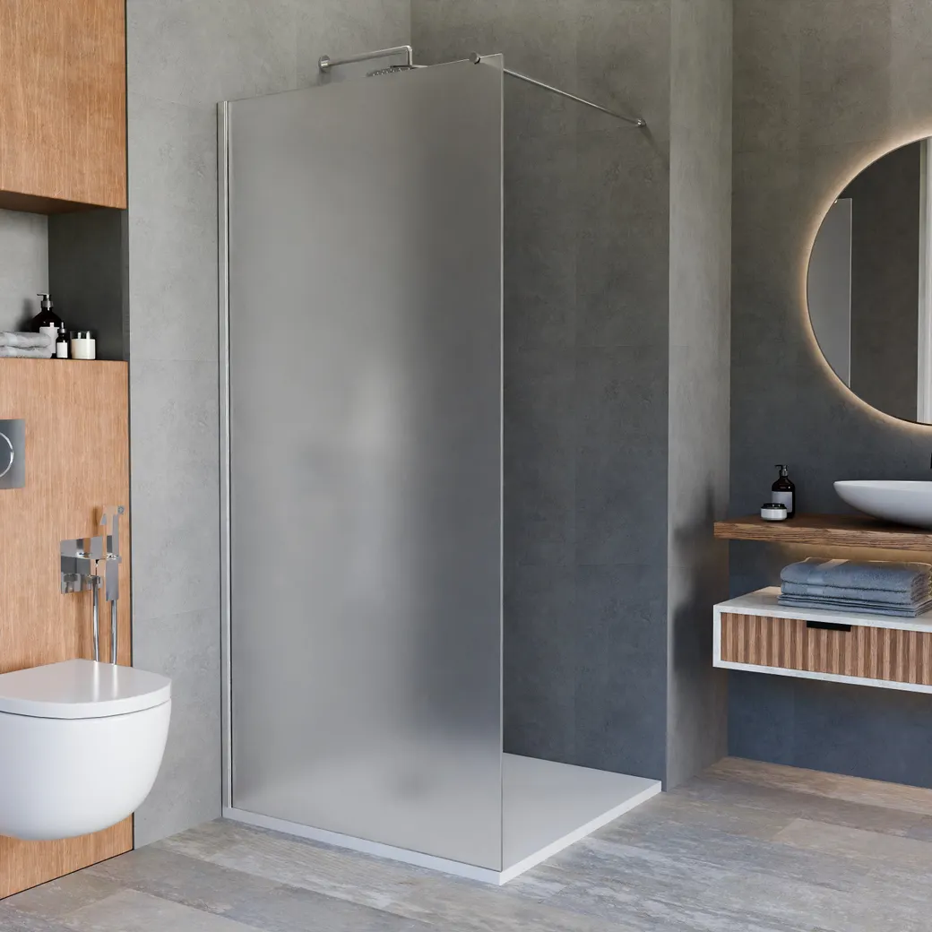 Ищете надежное решение для вашей ванной комнаты? Душевая перегородка INRAIN MONT-010 из стекла станет идеальным выбором для создания современного и функционального пространства. Благодаря матовому стеклу и хромированному профилю, эта перегородка не только визуально расширяет помещение, но и обеспечивает приватность.