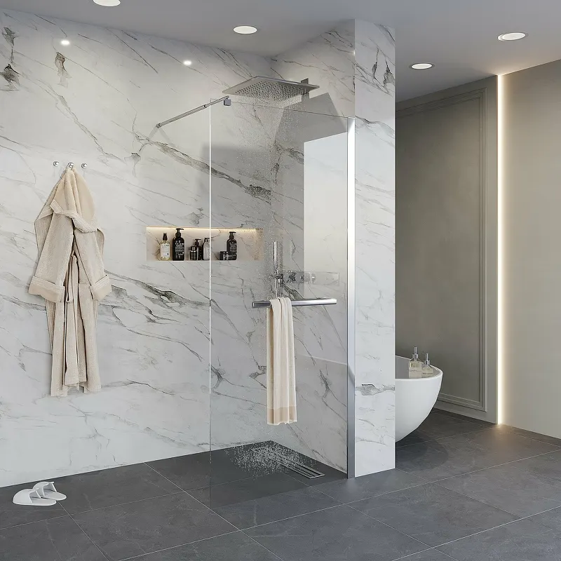 - Современный дизайн: Душевые перегородки с прозрачными стеклами и хромированным профилем поддерживают современный дизайн ванной комнаты.