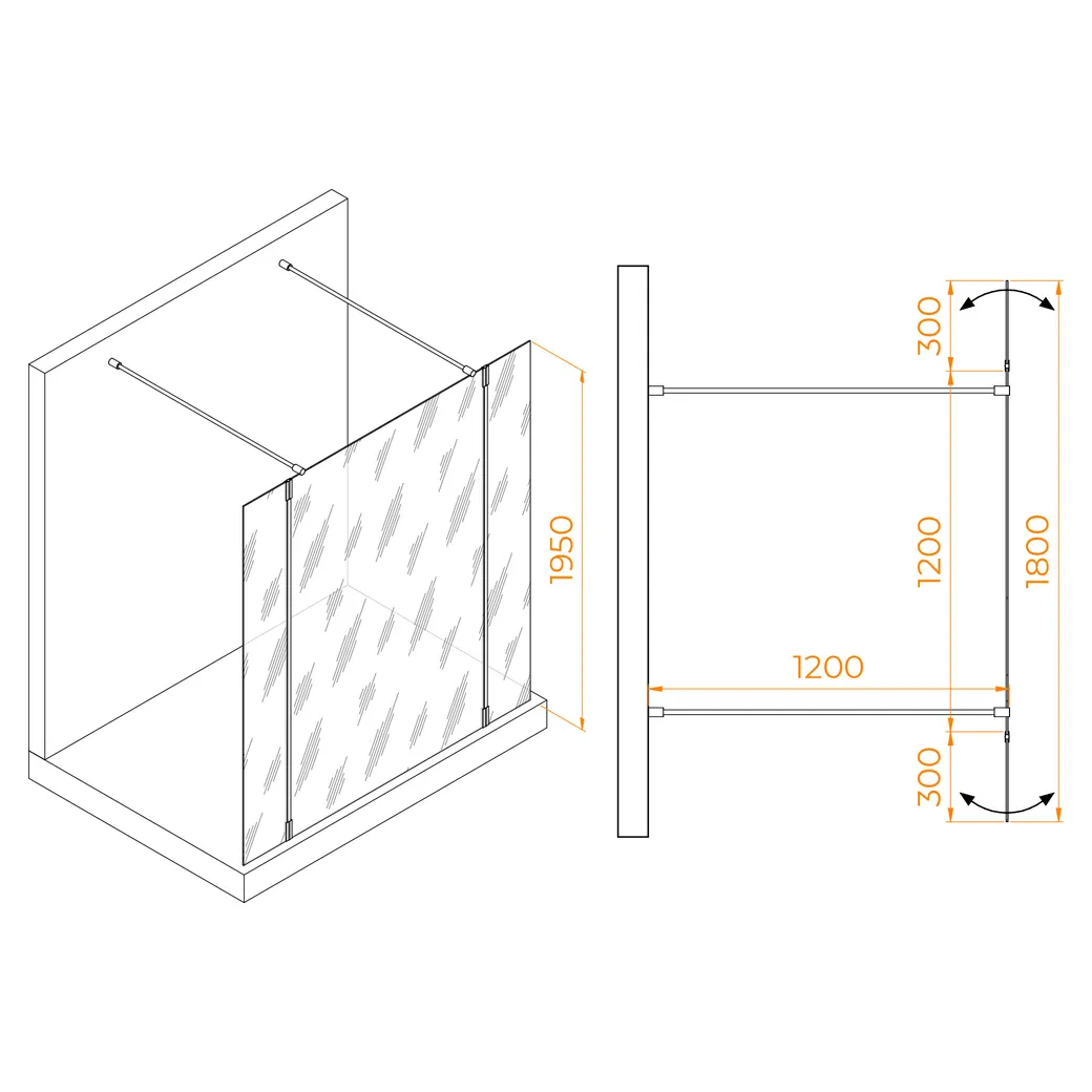 Эта модель идеально подходит для нестандартных проектов душевого пространства, обеспечивая максимальный комфорт для пользователя. WA-052 оснащена двумя подвижными стеклами из закаленного стекла, которые легко крепятся к стационарному стеклу перегородки с помощью усиленных петель из нержавеющей стали AiSi 304. Петли с герметичным поворотным механизмом и маятниковой системой позволяют открывать приставные стекла наружу для удобного доступа в душевое пространство или закрывать их внутрь, частично закрывая вход и предотвращая брызги во время водных процедур.