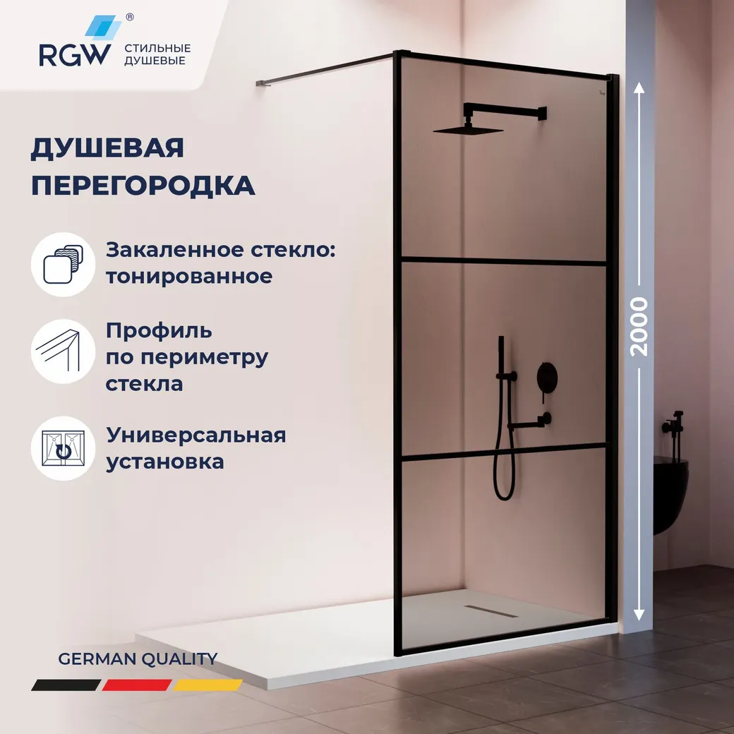 Душевая перегородка RGW WA-09B 900, профиль черный, стекло тонированное, арт-06100909-34 — фото 1, Душевые перегородки
